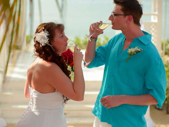 Our week started with a complimentary upgrade to an amazing ocean front suite! The resort wedding planner, Nikita, was a tremendous advocate for us - she meant business and everyone listened to her!! We loved that. Everything was on time, ran smoothly and happened just has she said it would. The decor, gazebo, my bouquet, Lee's boutonniere all so beautiful! The minister was super cool, genuine, and kind of funny - he added to the special memory of the ceremony! The whole beach watched, and applauded us after the ceremony – it added to the experience. The weather was amazing, blue skies and a slight breeze just to keep us cool - perfect! The Jamaican scenery made for phenomenal wedding pics (Jamaica-Lexon Photography). Our reception was also amazing! Great Food, Romantic Setting, and Exceptional Service!! We loved every minute of it!!! Truly, was one of the best days of our life!
